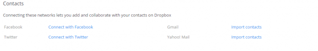 Bạn sẽ có thêm 125MB cho mỗi liên kết từ Dropbox đến tài khoản mạng xã hội Facebook và Twitter.
