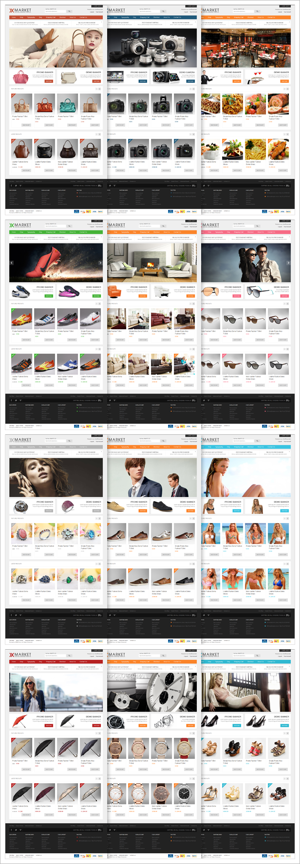 XMarket được tích hợp với 14 giao diện khác nhau, 14 trang Onpage, 14 trang bảo trì ..Phù hợp cho bạn sử dụng làm Website bán quần áo, website bán máy ảnh, website bán giày ...