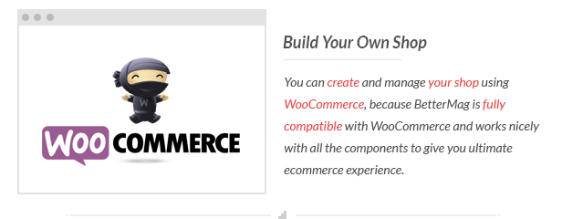 WooCommerce Fully Integrated: Create an Amazing Shop using the industry standard eCommerce platform for WordPress. Also there is unique features for customizing shop style.
