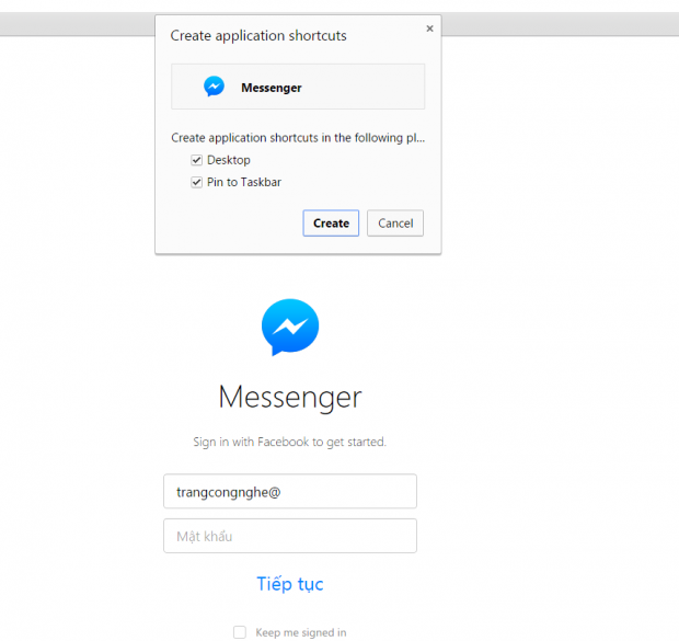 Mới đây Facebook đã ra mắt phiên bản Messenger phiên bản web để người sử dụng dễ dàng trò chuyện cùng bạn bè, để sử dụng bạn cần mở trình duyệt và truy cập địa chỉ Messenger.com và bắt đầu chat. để thuận tiện hơn khi trò chuyện cùng bạn bè, Trang Công Nghệ sẽ hướng dẫn bạn tạo app Facebook Messenger cho máy tính một cách đơn giản, bạn có thể dễ dàng minimize cửa sổ Messenger xuống mà không gây ảnh hưởng đến các tab khác, cũng không bị các thanh công cụ hay thanh địa chỉ làm phiền.