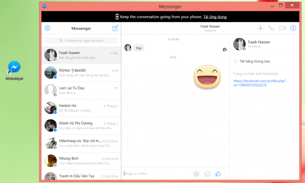 - Đóng Chrome lại, mở shortcut 'Messenger' mới xuất hiện trên desktop