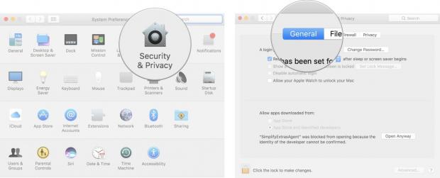 B5: Nhấp vào biểu tượng ổ khóa ở góc dưới bên trái của cửa sổ Security & Privacy.