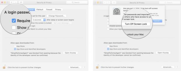 B9: Nhấn vào Turn Off Screen Lock để xác nhận rằng bạn muốn vô hiệu hóa yêu cầu mật khẩu để mở khóa màn hình của Macbook.