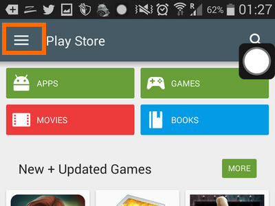 Bước 2: Trong cửa hàng Play Store, bạn hãy chạm vào nút Menu nằm ở phía trên bên trái của màn hình.