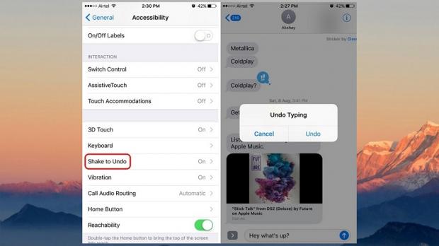 Nếu bạn muốn nhanh chóng lấy lại đoạn văn bản mà bạn vừa gõ hay dán, bạn chỉ cần lắc máy của mình để hoàn tác đoạn văn bản đó và nhiều hơn nữa. Đúng như vậy, tính năng “Shake Undo” (Lắc để hoàn tác) dùng để hoàn tác một đoạn văn bản đánh máy, sau chép, hay được cắt dán. Bạn có thể kích hoạt tính năng này bằng cách truy cập vào Cài đặt chung > Trợ năng Lắc để hoàn tác trên thiết bị của mình.