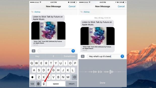 Đây không hẳn là một thủ thuật nhưng không phải ai cũng biết rằng bạn hoàn toàn có thể nhập văn bản mà không cần động tay tới bàn phím. Để làm điều này, bạn chỉ cần chạm vào nút “Mic” trên bàn phím iPhone, sau đó sử dụng giọng nói để iPhone nhập văn bản tương ứng giúp bạn.