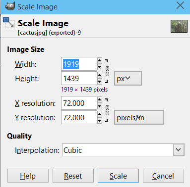 Bước 2: Sau khi điền vào chiều rộng của hình ảnh, GIMP sẽ tính toán độ cao giúp bạn. Điều này sẽ tạo ra được hình ảnh vô cùng cân đối. Ngược lại, nếu bạn tự nhập thông tin cả chiều rộng và chiều cao, hình ảnh sẽ bị méo mó. Cuối cùng, bạn hãy nhấn Scale để hoàn tất.