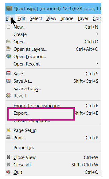 Bước 1: Để giảm độ phân giải hình ảnh song vẫn giữ được kích thước tương tự, bạn hãy chọn File> Export.