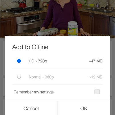 Bước 4: Tại phần Add to Offline bạn hãy chọn chất lượng video và bấm vào OK.