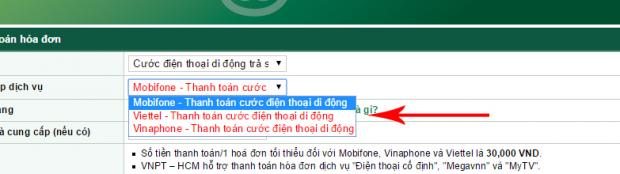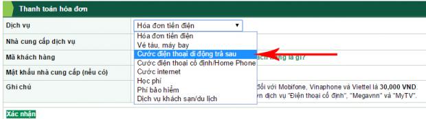 Ngân hàng Vietcombank có khá nhiều lựa chọn thanh toán hóa đơn qua Internet điển hình :
