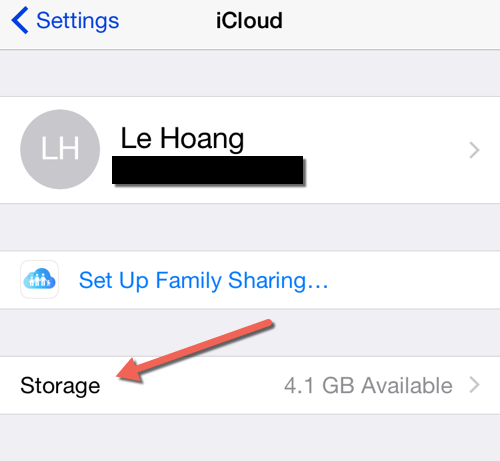 Bước 3: Màn hình tiếp theo sẽ hiển thị một bản tóm tắt ngắn gọn về tài khoản iCloud của bạn. Sau đó, dưới tên tài khoản, bạn sẽ thấy một tùy chọn hiển thị không gian lưu trữ có sẵn trong tài khoản của bạn. Vì vậy, bạn hãy chạm vào tùy chọn Storage để tiếp tục.