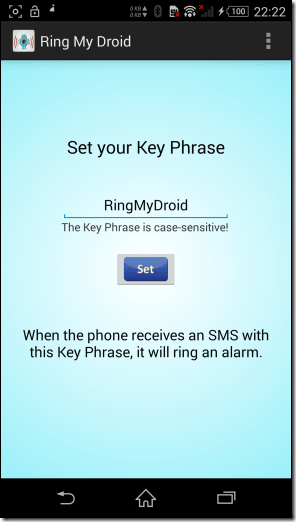 Nếu điện thoại của bạn không kết nối internet, bạn có thể sử dụng ứng dụng Ring My Droid. Sau khi ứng dụng được cài đặt trên điện thoại của bạn, bạn có thể thiết lập một cụm từ SMS và lưu lại các thiết lập. Sau này, nếu bạn muốn xác định vị trí điện thoại khi nó ở chế độ im lặng, bạn chỉ cần lấy một chiếc điện thoại khác, gửi một tin nhắn SMS đến điện thoại của bạn với những cụm từ được thiết lập trước đó. Khi ứng dụng phát hiện tin nhắn được gửi đến, chúng có thể đổ chuông ngay khi ở chế độ im lặng.