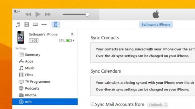 Bạn hãy nhấp vào đây, chọn Info. Sau đó, dưới phần Sync Contacts, bạn sẽ thấy thông báo “Your contacts are being synced with your iPhone over the air from iCloud”. Lúc này, bạn sẽ cần truy cập lại mục Settings, chọn iCloud và gạt biểu tượng bên cạnh 'Contacts' để tắt.