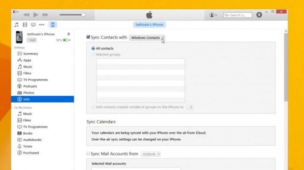 Bây giờ, khi quay trở lại iTunes, bên cạnh mục 'Sync Contacts with' bạn sẽ thấy một hộp thả xuống. Lúc này, bạn hãy nhấp vào đây, chọn Google Contacts và sử dụng Gmail để đăng nhập. Cuối cùng, bạn hãy nhấn 'Apply' và địa chỉ liên lạc của bạn bây giờ sẽ được lưu vào Google.