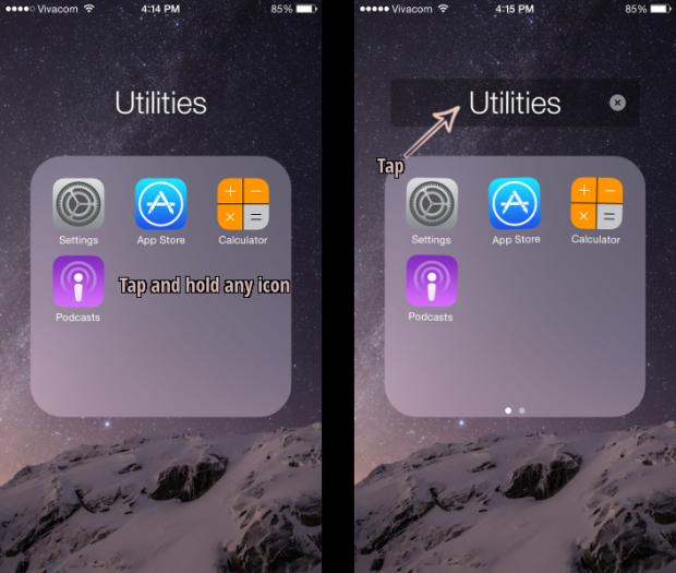 Khi lần đầu tiên tạo ra một thư mục, bạn hãy lựa chọn tên cho thư mục ấy theo ý muốn của mình. Nếu muốn đổi tên cho thư mục, bạn cũng chỉ cần nhấn và giữ vào một ứng dụng có trong đó, khi biểu tượng các ứng dụng bắt đầu rung, bạn có thể chạm vào khung để đặt lại tên mới.