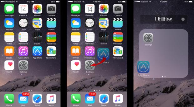 Để đặt các ứng dụng vào trong một thư mục, bạn hãy nhấp và giữ vào một trong các biểu tượng mà bạn muốn. Sau đó, bạn sẽ thấy màn hình được chuyển sang'chế độ chỉnh sửa' (tất cả các biểu tượng ứng dụng bắt đầu rung). Lúc này, việc bạn cần làm là kéo biểu tượng đã chọn và đặt chúng đè lên một ứng dụng khác mà bạn muốn đặt chúng vàp cùng một thư mục.