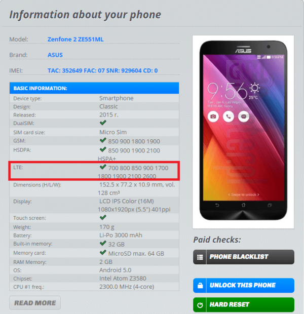 Bước 5: Thông số điện thoại của bạn sẽ hiện ra. Hãy tìm tới mục LTE, nếu có dấu tích ✓ màu xanh xuất hiện, đồng nghĩa với việc điện thoại bạn có hỗ trợ kết nối 4G.
