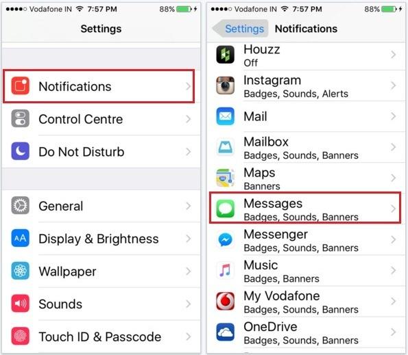 Bước 1: Đầu tiên, bạn hãy chọn Settings> Notifications> Messages.