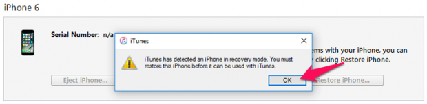 Đến khi trên iTunes hiện thông báo chế độ DFU như hình dưới là thành công, nhấn OK.