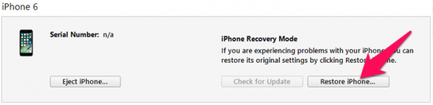 Vẫn trong ứng dụng iTunes, bây giờ bạn hãy nhấn vào nút Restore iPhone.