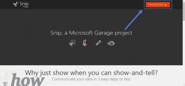Tải về và cài đặt phiên bản mới nhất của Microsoft Snip từ các liên kết dưới đây. Click vào “Download Snip” ở góc trên bên phải. Thực hiện theo các hướng dẫn trên màn hình, sẽ chỉ mất một hoặc hai phút để cài đặt ứng dụng này trên máy tính của bạn.