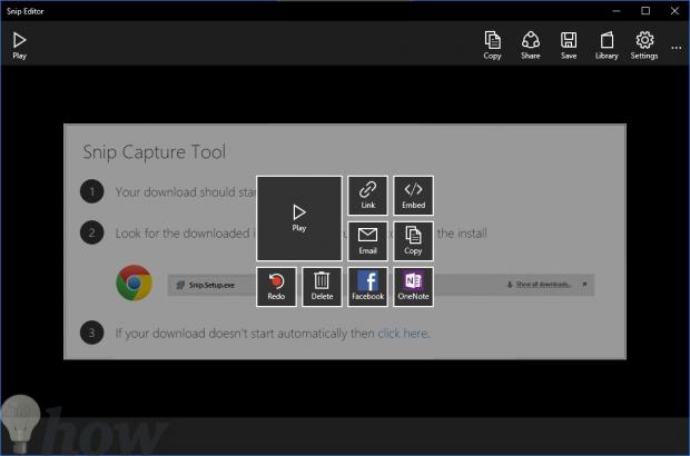 Bây giờ, bạn sẽ thấy một hộp nhỏ màu đen ở phía trên cùng của màn hình. Ở đây bạn sẽ tìm thấy tất cả các chức năng của Microsoft Snip. Nhấn vào biểu tượng đầu tiên để có chụp màn hình, biểu tượng thứ 2 để mở bảng trắng của Microsoft Snip. Tuy nhiên, nếu bạn muốn chụp ảnh bằng webcam hoặc máy ảnh, chỉ cần nhấp vào biểu tượng máy ảnh. Biểu tượng nhỏ cuối cùng ở góc bên phải sẽ đưa bạn đến thư viện, nơi ảnh chụp màn hình được lưu lại.