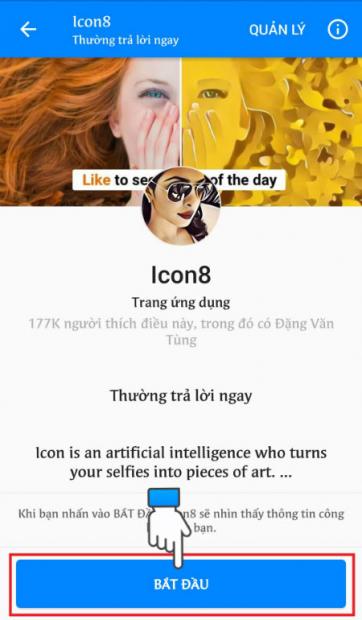 - Đây là người máy (bot) được tạo ra để hỗ trợ tạo hiệu ứng ảnh cho bạn. Chọn Bắt đầu.
