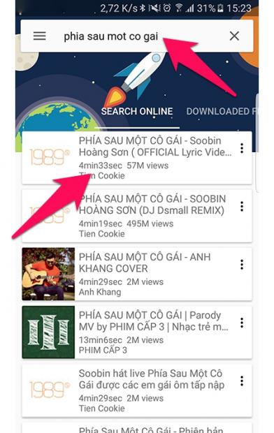 Tuy vậy, cách trên chưa tiện lợi vì tốn nhiều thao tác và cũng chưa tiết kiệm tối đa vì phải tải hình đại diện (thumbnail) của video. Bạn có thể dùng trực tiếp ứng dụng Y Music để tìm bài hát và phát trực tiếp.
