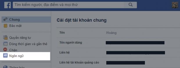 Cách chuyển facebook sang tiếng anh trên máy tính