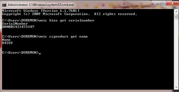Sau đấy các bạn gõ vào cửa sổ dòng lệnh wmic bios get serial number để kiểm tra số Serial của laptop hoặc dùng lệnh wmic csproduct get name để kiểm tra tên dòng laptop của mình.