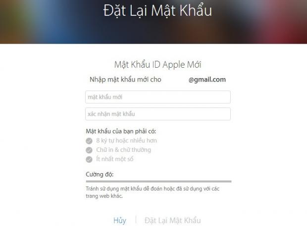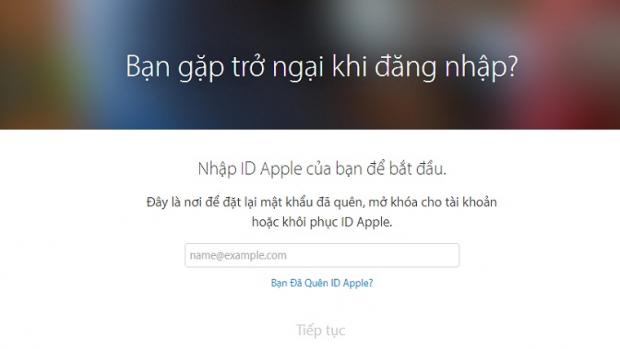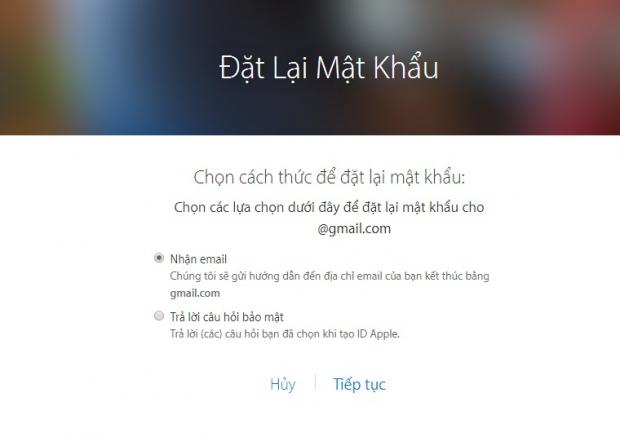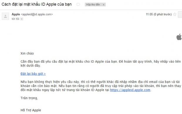 Sau khi bấm “Tiếp tục”, Apple sẽ gửi vào email của bạn đường link thay đổi mật khẩu