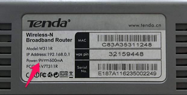 Xem thông tin được in ở mặt sau modem/router. Để ý trên router của mình có ghi 9V như hình sau nghĩa là bạn cần cấp nguồn 9V, có loại 12V tùy trường hợp.