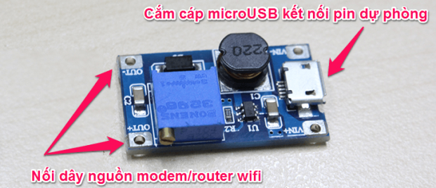 Bạn cần mua một module tăng áp để tăng dòng 5V của sạc dự phòng lên 9V (hoặc 12V) dùng cho modem/router tốt nhất là loại có sẵn 1 đầu vào (in) là cổng microUSB. Tham khảo mua loại mình dùng trong bài ở đây hoặc hỏi mua tại các tiệm điện tử, tìm trên Google với từ khóa 'module tăng áp 5V-9V', 'module tăng áp 5V-12V' hoặc 'module tăng áp DC-DC'.