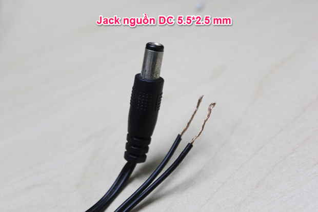 Jack nguồn DC 5.5*2.5 mm, ở đây mình cắt ra từ bộ nguồn modem. đa số modem/router dùng loại này hoặc có một loại khác là jack nguồn DC 5.5*2.1 mm.