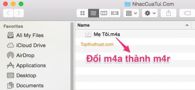 Khi đó, một cửa sổ mới hiện ra, bạn tiến hành đổi định dạng m4a sang m4r.