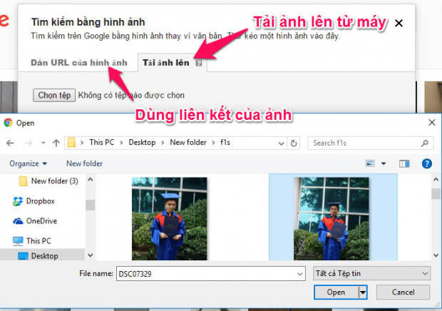 Ở đây bạn có thể chọn tải ảnh từ máy tính hoặc lấy liên kết của ảnh (URL) để tìm kiếm.