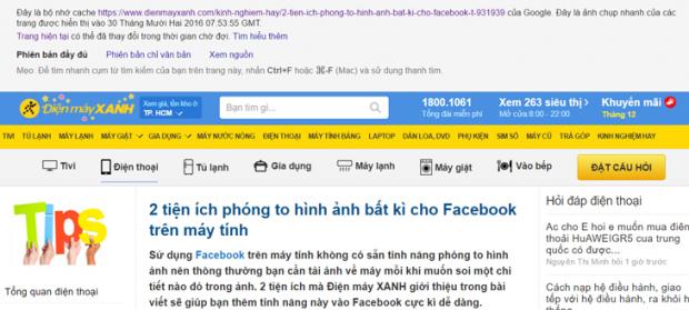 Cú pháp ở đây là cache: liên kết. Ví dụ cache: dienmayxanh.com.