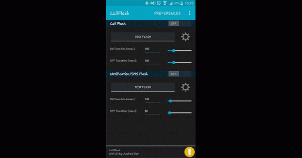 Trong ô cài đặt của ứng dụng, sẽ có 2 tuỳ chọn điều chỉnh đèn Flash cho cuộc gọi và cho thông báo hoặc tin nhắn.