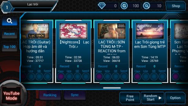 Ở giao diện chính bạn chọn biểu tượng kính lúp để tìm video bài hát trên Youtube. Ví dụ mình chọn bài Lạc trôi của Sơn Tùng MTP mới ra và cực hot gần đây, tuy nhiên vì MV gốc không được sử dụng bởi lý do bản quyền nên mình sẽ tìm một bài Lạc trôi khác như [Nigtcore] Lạc trôi với âm beat cũng khá thú vị và sôi động.