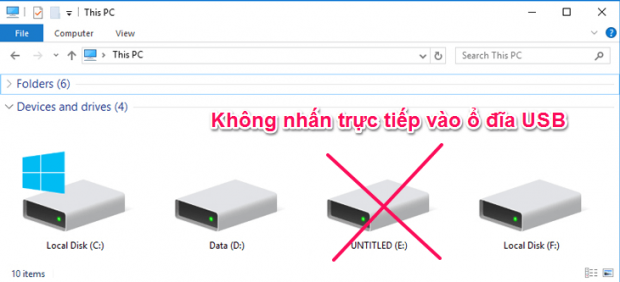 Thói quen thông thường, người dùng hay nhấn thẳng vào biểu tượng ổ đĩa usb. Nhưng một lần nữa, thao tác này vô tình lại kích hoạt tính năng Autoplay, làm cho virus có thể tự động khởi chạy.