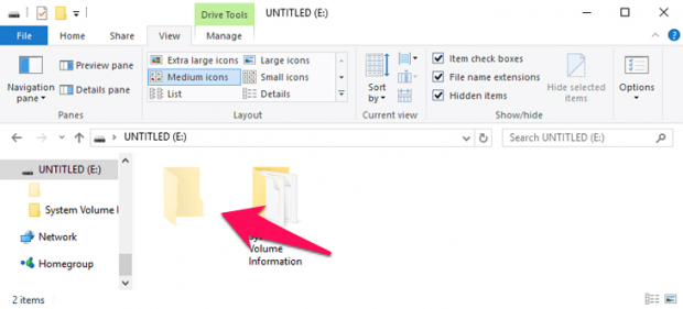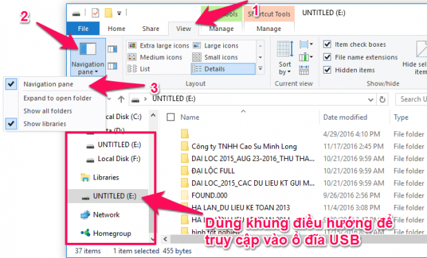 Thay vào đó bạn hãy sử dụng bảng điều hướng hay khung điều hướng để truy cập vào dữ liệu bên trong USB.