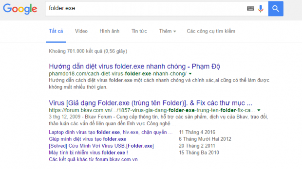 Ngoài ra để chắc hơn, bạn hãy tìm kiếm tên file này trên Google để phát hiện virus.