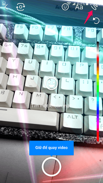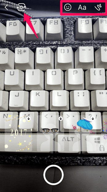 Bước 5: Ở biểu tượng chữ Aa bạn có thể chèn chữ vào hình ảnh và tùy chỉnh sao cho phù hợp, đẹp mắt nhất. Khi đã sẵn sàng mọi thứ bạn chỉ cần nhấn vào hình tròn ở giữa để chụp ảnh.