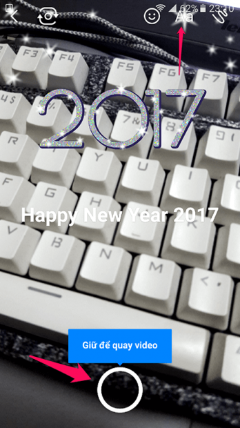 Bước 2: Tiếp theo bạn vào biểu tượng 2017 màu xanh để đến với tính năng chụp ảnh với nhiều hiệu ứng đặc biệt được cập nhật theo các sự kiện lớn như giáng sinh hay năm mới.