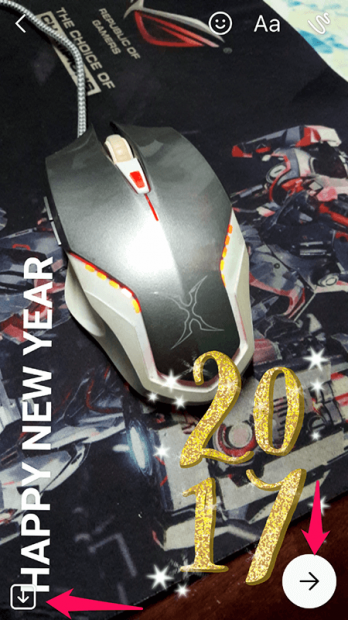 Bước 6: Khi đã chụp được một bức ảnh ưng ý, bạn nhấn vào biểu tượng mũi tên ở góc phải để gửi tấm hình này cho bạn bè của mình, hoặc ấn vào tượng mũi tên đi xuống để tải hình ảnh này về máy.