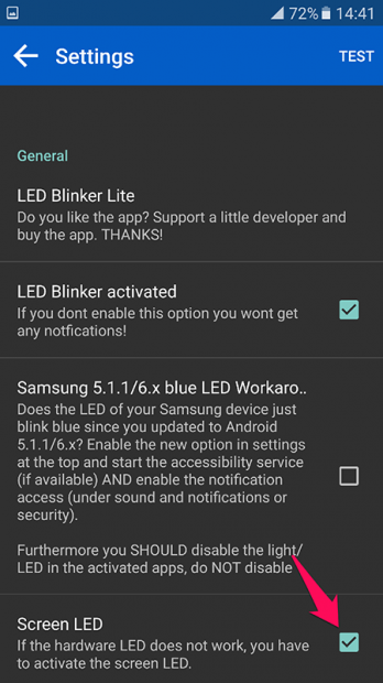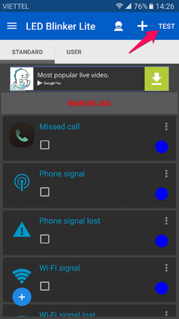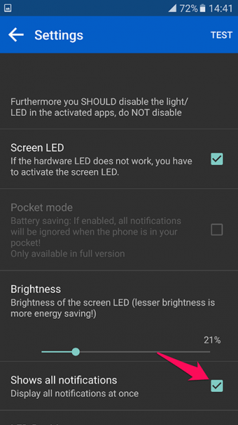 Bước 4: Đối với những thiết bị không được hỗ trợ để đổi màu led thông báo thì ứng dụng sẽ cung cấp một tính năng rất thú vị khác, đó là khi có một thông báo nào đó đến thì màn hình sẽ có một điểm sáng nhấp nháy trên màn hình đen. Đây cũng được xem như một cách mô phỏng chân thật nhất với đèn thông báo.