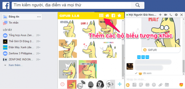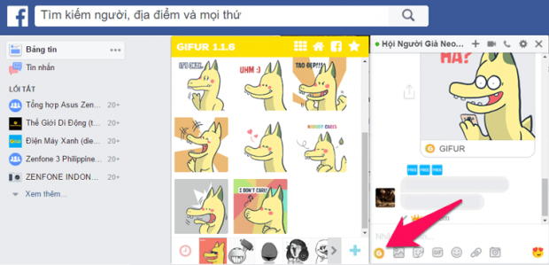 Như vậy là xong. Bây giờ hãy thử mở khung chat bất kì. Bạn sẽ thấy biểu tượng GIFUR như hình bên dưới.
