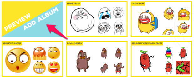 Có rất nhiều bộ biểu tượng cảm xúc. Nếu thích bộ nào bạn chỉ cần di chuột vào và chọn Add Album.