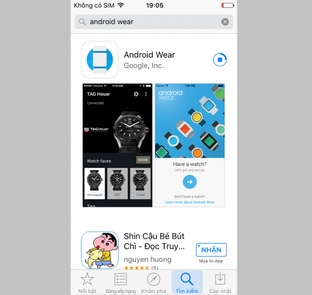 Bước 1: Tải về ứng dụng Android Wear để cài đặt trên iPhone của mình và bật thiết bị smartwatch lên.