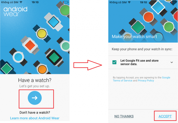 Trên điện thoại của bạn mở ứng dụng Android Wear lên